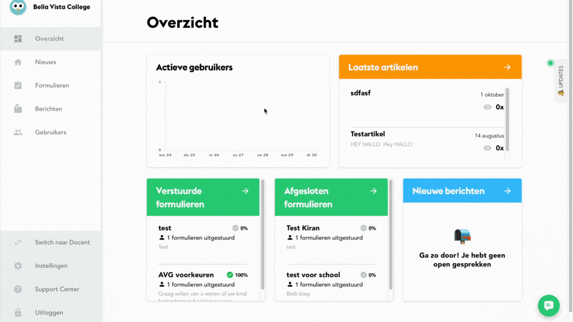 Gekoppelde medewerkers kunnen communiceren met ouders/leerlingen van die groepen.